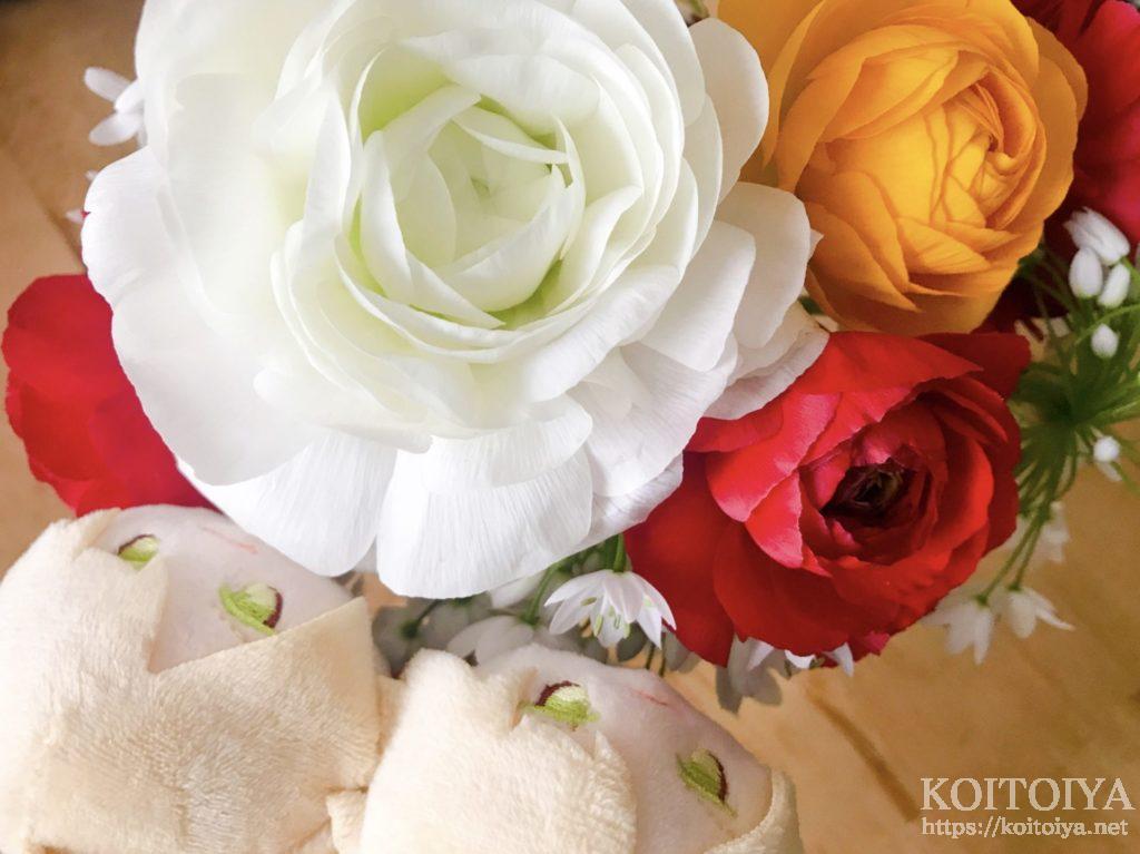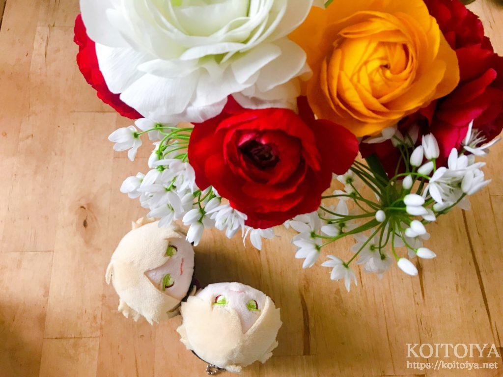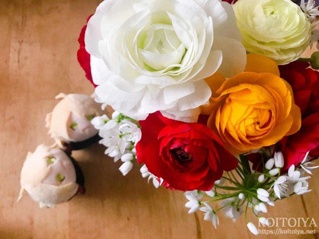 白のラナンキュラスがひときわ大きくてお頭みたいだにゃ~